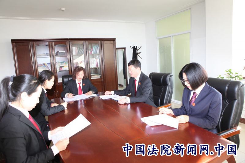▲长白县法院扫黑除恶专项斗争办公室成员围坐一起研究交流、讨论。