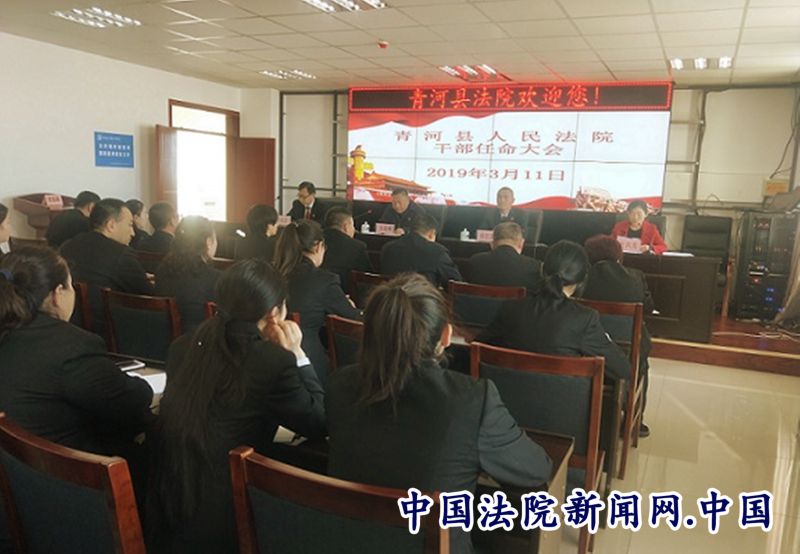中国法院新闻讯(拉扎提)3月11日上午,青河县人民法院召开干部任命大会,新任副院长哈勒木拉提同志到任就职。青河县政府副县长、县委政法委副书记安高峰、青河县人民法院党组书记贺承武、青河县人民法院院长保拉提、青河县组织部委会委员、干部室主任杜凤英出席了会议。会议由保拉提院长主持。青河县人民法院全体干警参加了会议。