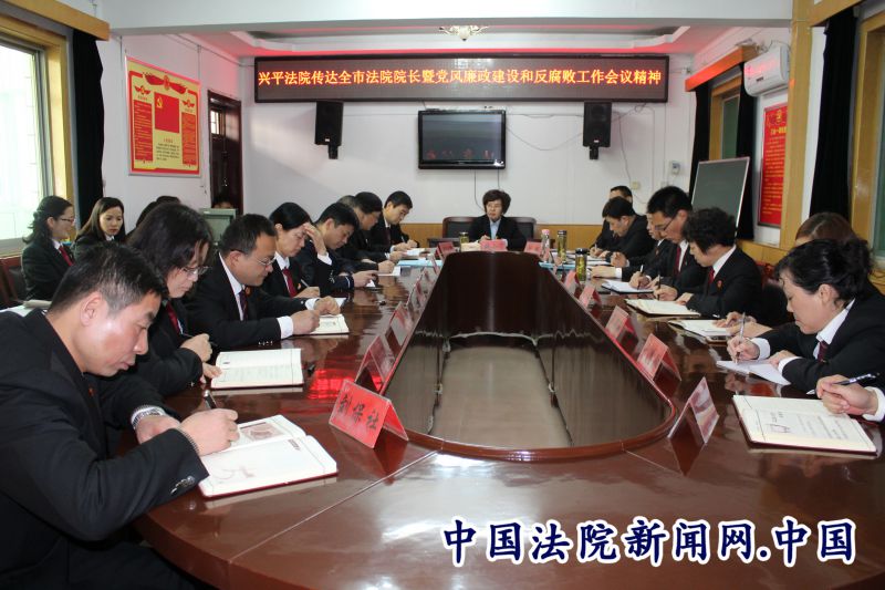 中国法院新闻讯(李军委)3月18日上午,兴平法院召开中层以上干警及员额法官会议,传达全市法院院长暨党风廉政建设和反腐败工作会议精神,对全院近期各项工作再安排、再部署。魏小宁院长主持了会议。