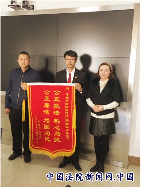 至此,该案终于圆满执结,双方当事人竟都对艾力江竖起了大拇指。凤某更是以一面锦旗表达了对艾力江的感激,同时也激动地表达了对阜康法院执行工作的理解和支持。