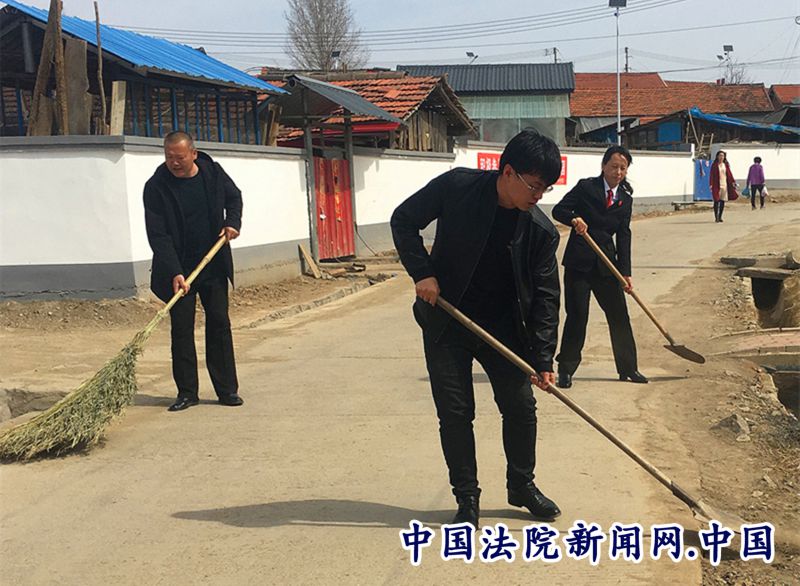 在抽水村,同志们你握着笤帚,他拿着铁锹对针对抽水村各条街巷认真进行清扫,虽然活动当天天气较为干燥,清扫时灰尘很多,大家不嫌脏,不怕累,相到配合,沿着村内水泥路面、胡同巷道重点清扫越冬白色垃圾,劳动中不时有百姓站在家门口对法院同志的辛勤劳动作点赞。活动共清扫街道、巷路4条300延长米,清扫垃圾2编织袋,走村入巷开展清洁活动,使同志们切身感受到服务群众的光荣与使命。清扫结束后,同志们又专门看望报7户建档立卡贫困户,并把法院印制的扫黑除恶专项斗争宣传图册一一发给贫家庭,认真宣传解答涉黑涉恶的重要性和现实意义,确保涉黑涉恶宣传工作至上而下,纵横到边,不留死角。