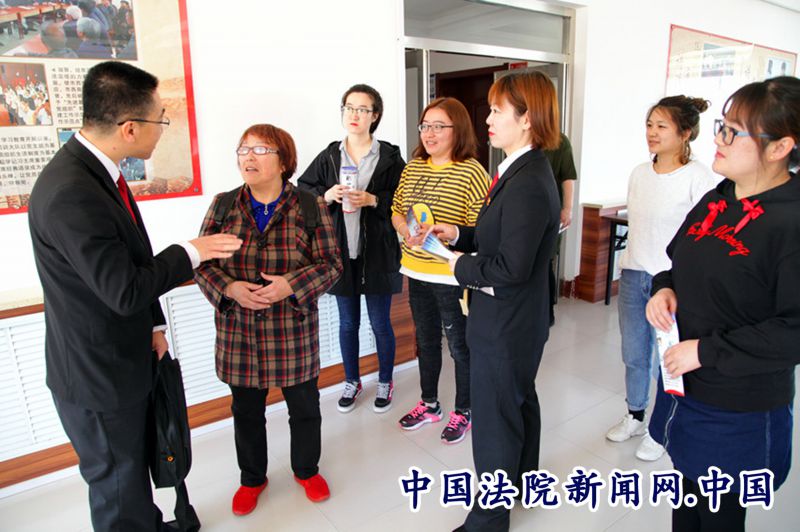 社区大妈向法官关咨询法律。